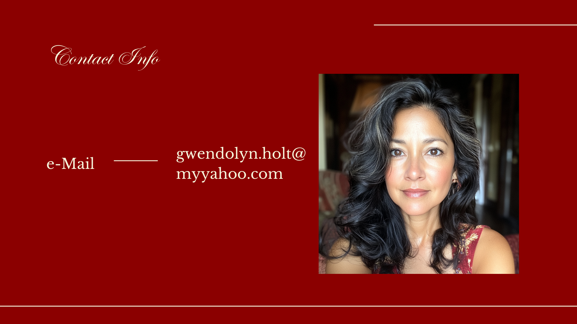 “Gwendolyn Holt writes with the precision of a scholar and the passion of a queen reclaiming her throne. Her prose doesn’t just tell a story—it seduces you into a world where every whisper matters, and every woman is a force to be reckoned with.”